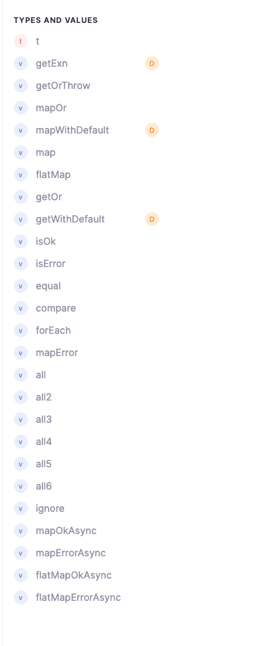 There is no particular order for the types and values. This makes sense if I know exactly which methods I want to use and can just search for it, but sometimes maybe I want to discover what functions are available and it’s kind of unpredictable with no defined order.